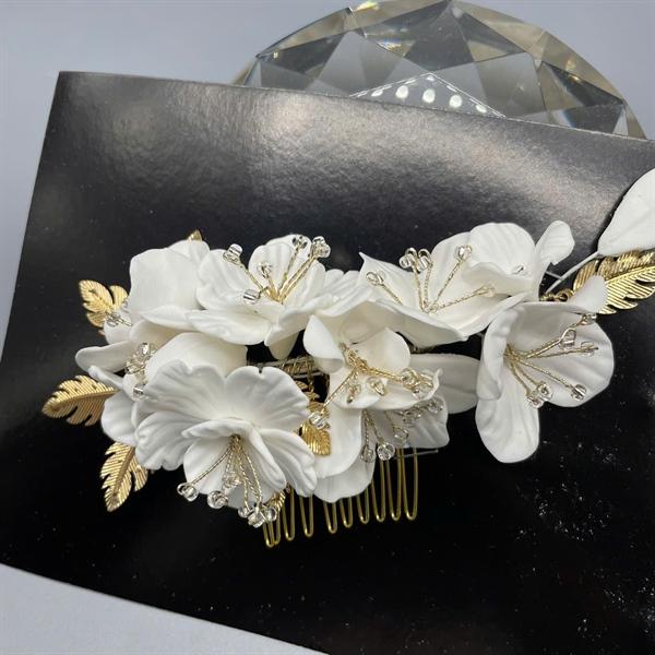 ✨Cài tóc cô dâu hoa đất sét trắng có sẵn xược cài mã 002 - 15cm
