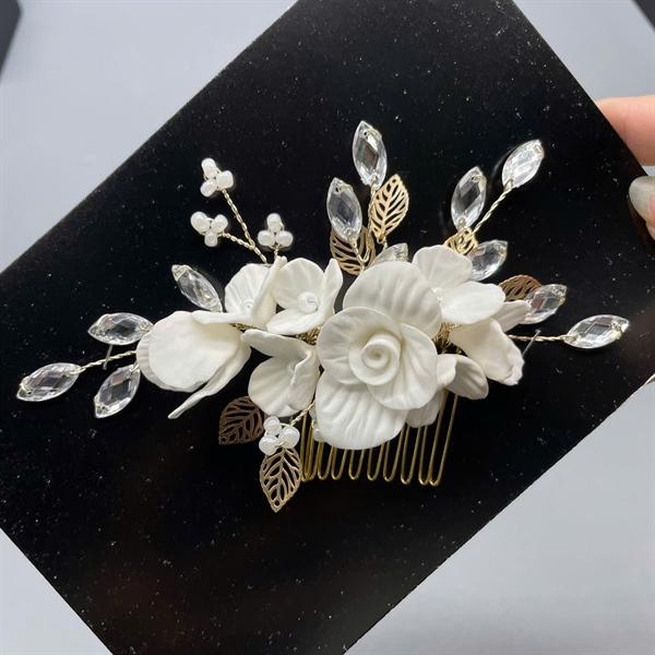 ✨Cài tóc cô dâu hoa đất sét trắng có sẵn xược cài mã 005 - 14cm