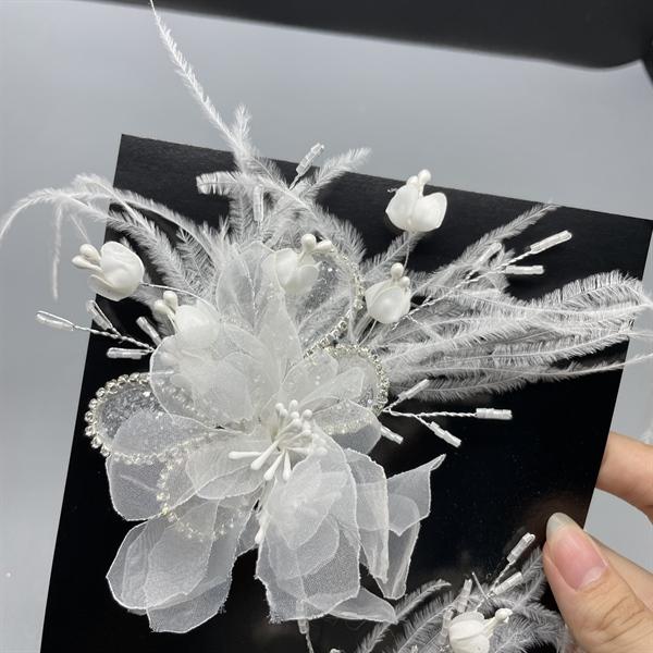 ✨Cài tóc cô dâu hoa voan trắng đính lông vũ mới t8/2024