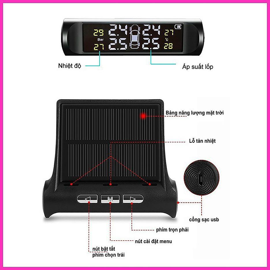 - Tính năng của sản phẩm cảm biến áp suất lốp – Không phải trực tiếp ra ngoài tận mắt kiểm tra nữa! – Thiết bị cảnh báo áp suất lốp sẽ thông báo thường xuyên áp suất lốp của từng chiếc bánh xe cho bạn ngay cả khi bạn đang di chuyển xe trên đường. – Chạy bằng năng lượng mặt trời – Thiết bị cảm biến áp suất và nhiệt độ lốp TPMS thông minh này sẽ có cảnh báo bằng âm thanh và hình ảnh tới bạn mỗi khi áp suất lốp quá thấp < 1,7 Bar hoặc > 3,3 Bar hoặc nhiệt độ lốp > 70*C – Có cảnh báo âm thanh – Chạy bằng năng lượng mặt trời – Tự lắp đặt tại nhà! Chỉ việc vặn 4 nắp van vào 4 lốp xe của mình là xong và dùng ốc đảo chiều xiết chặt sản phẩm lại để đảm bảo không bị rơi rớt.
