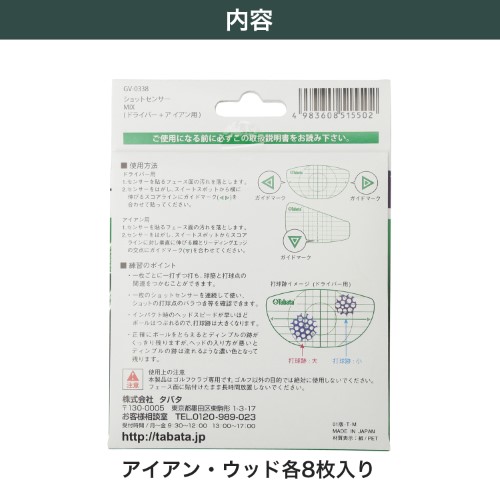 Cảm biến mặt gậy Fairway GV0338 Số lượng: 8 tấm - 16 miếng dán Loại nhãn dán giấy nhạy áp lực, ghi điểm đánh bóng của quả bóng. Kích thước gói 130 × 98 (mm)