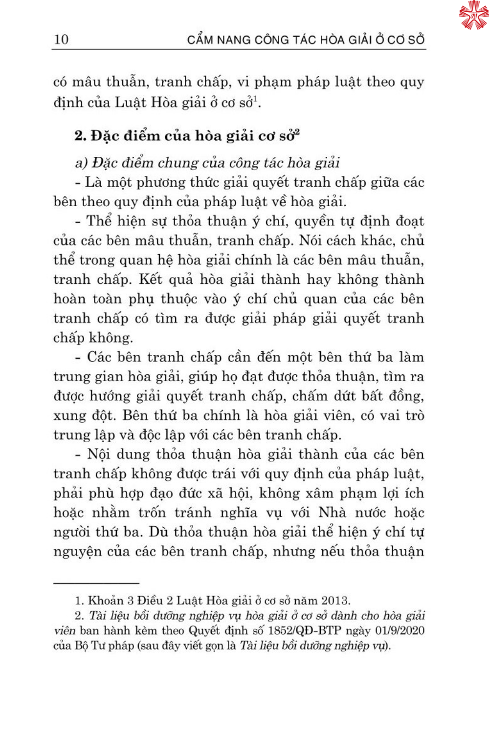 Công tác hòa giải ở cơ sở là một việc làm có ý nghĩa rất thiết thực đối với đời sống xã hội hiện nay nhằm mang lại niềm vui cho mọi người, mọi nhà, giữ gìn trật tự, an toàn xã hội, nâng cao ý thức pháp luật của người dân. Do vậy, việc các chính quyền ở cơ sở cần nắm vững những thông tin liên quan đến công tác hòa giải để giải quyết những mâu thuẫn, tranh chấp nhỏ trong nhân dân là một việc làm cần thiết. Đánh giá tầm quan trọng đó của công tác hòa giải, cuốn sách Cẩm nang công tác hòa giải ở cơ sở được xuất bản sẽ giúp chúng ta nhận thức được vấn đề đã nêu.