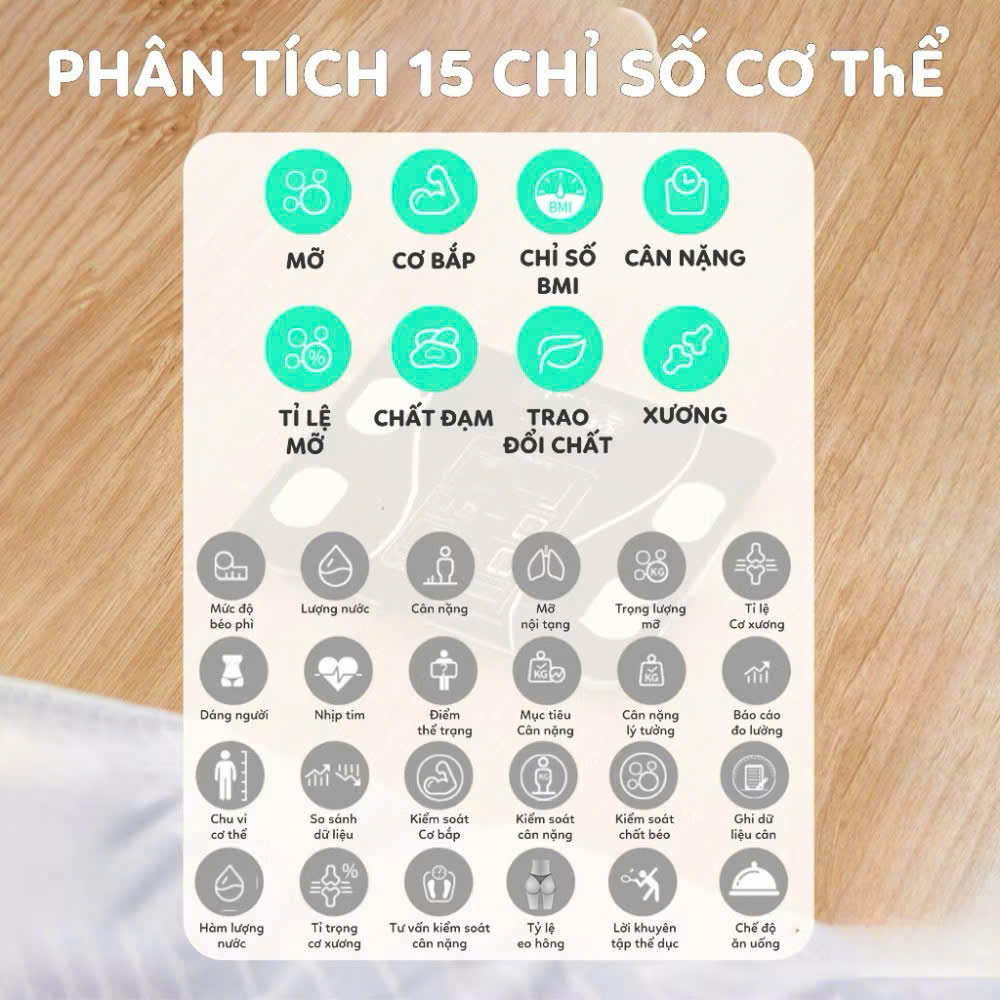 Theo dõi sức khỏe dễ dàng: Cân giúp bạn theo dõi và quản lý các chỉ số cơ thể chính xác mỗi ngày, giúp bạn duy trì một chế độ sống lành mạnh.