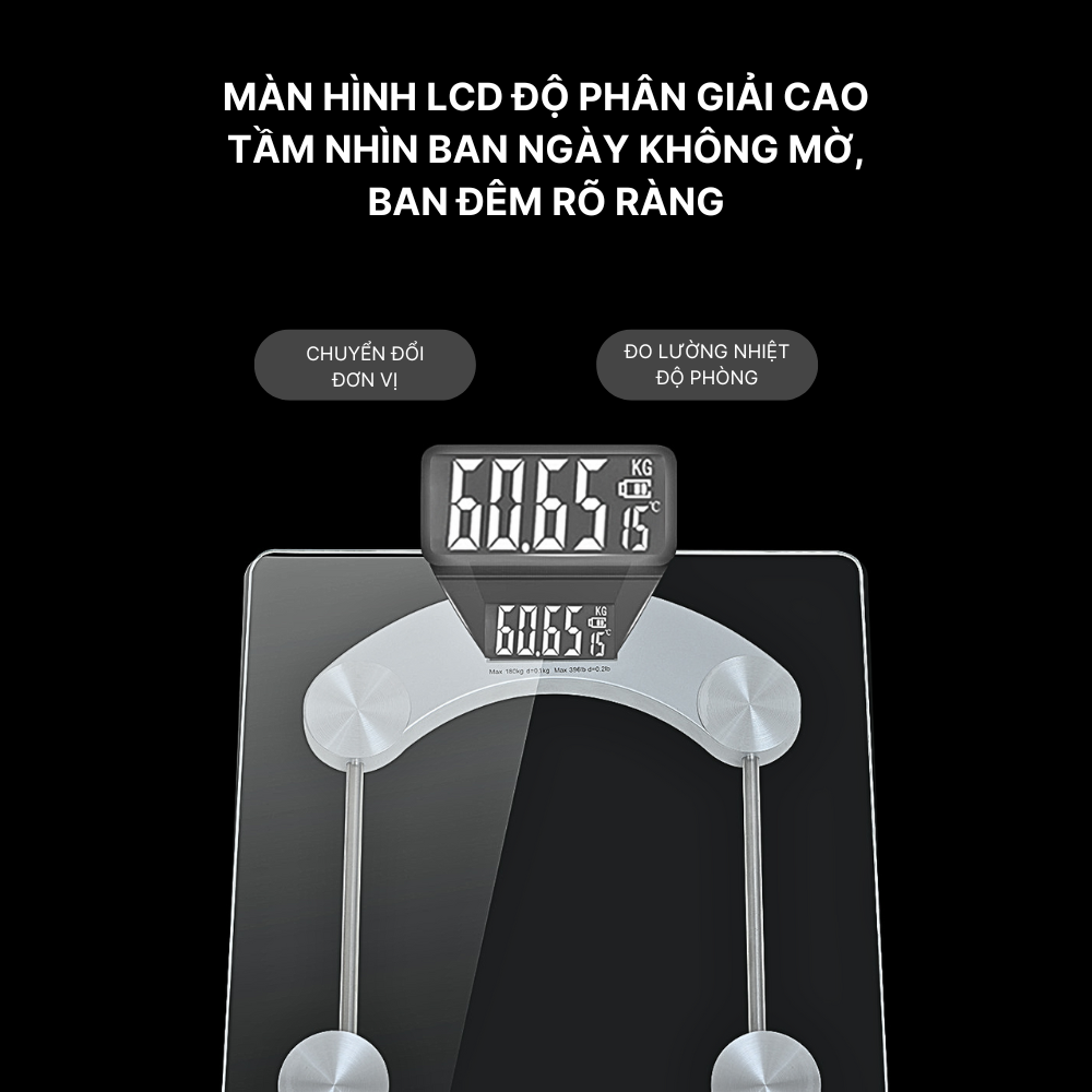 - Sản phẩm sở hữu kiểu dáng với mặt cân được làm từ kích cường lực cao cấp, cho tải trọng tối đa lên đến 180kg, đồng thời, chất liệu kính còn giúp việc làm sạch và di 3. chuyển cân cũng trở nên dễ dàng và nhanh chóng hơn.