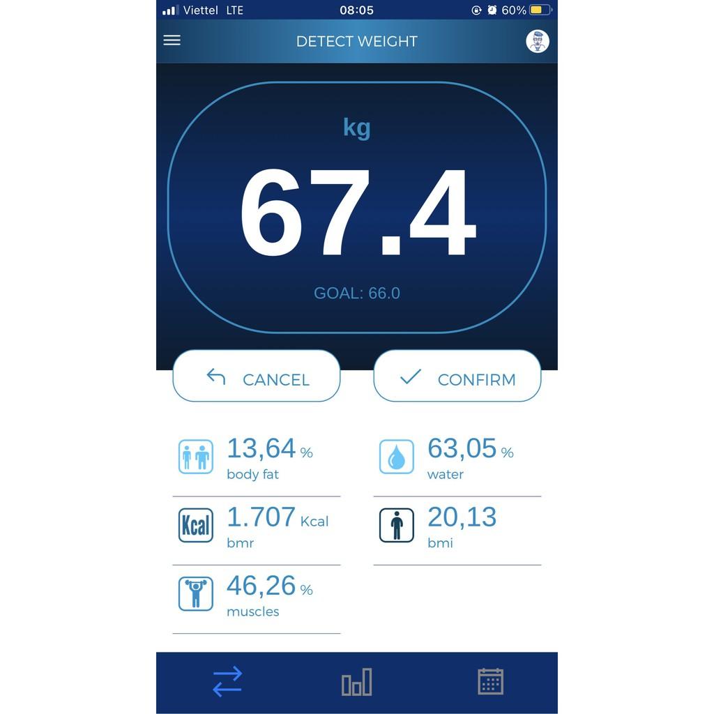 - Bật Bluetooth trên điện thoại, đứng lên cân và ấn "DETECT WEIGHT" trên màn hình ứng dụng, cân sẽ tự động kết nối với điện thoại và hiển thị các thông số trên ứng dụng. II – LƯU Ý.