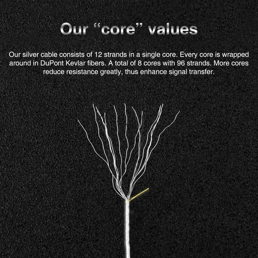 Cable Configuration : Main conductor in 8-core and 12 pure fine silver stands per core, 96 strands total