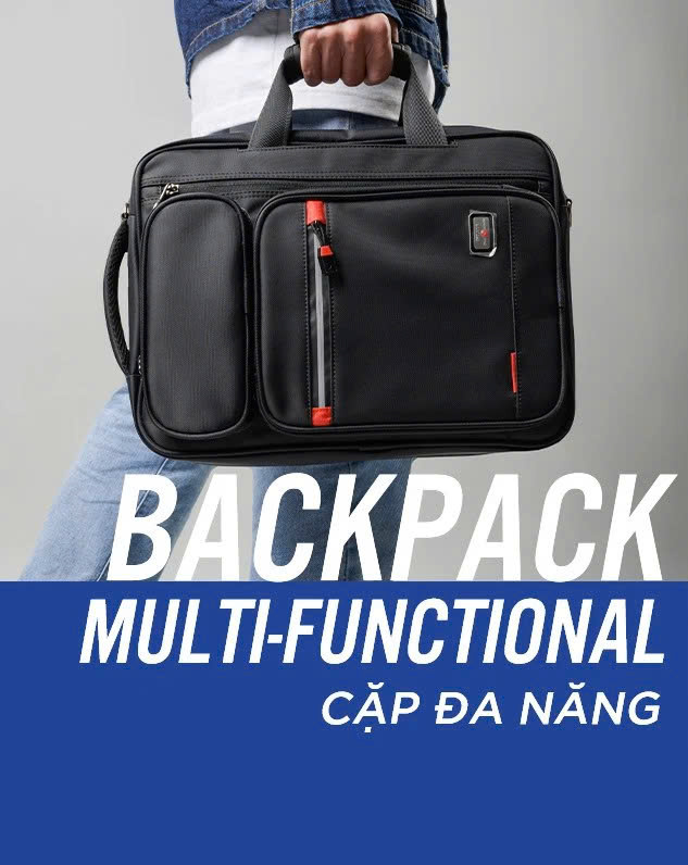 Cặp được thiết kế thời trang và thông minh 3 trong 1 giúp người sử dụng có thể mang được 3 kiểu: xách tay, đeo vai và đeo chéo có thể dễ dàng chuyển đổi từ chiếc cặp thành chiếc balo chỉ với 1 vài thao tác đơn giản để người sử dụng có thể thích nghi ở từng thời điểm. Ngoài ra, cặp còn được thiết kế thêm ngăn giấu quai giúp gọn gàng và nâng cao tính thẩm mỹ của sản phẩm.