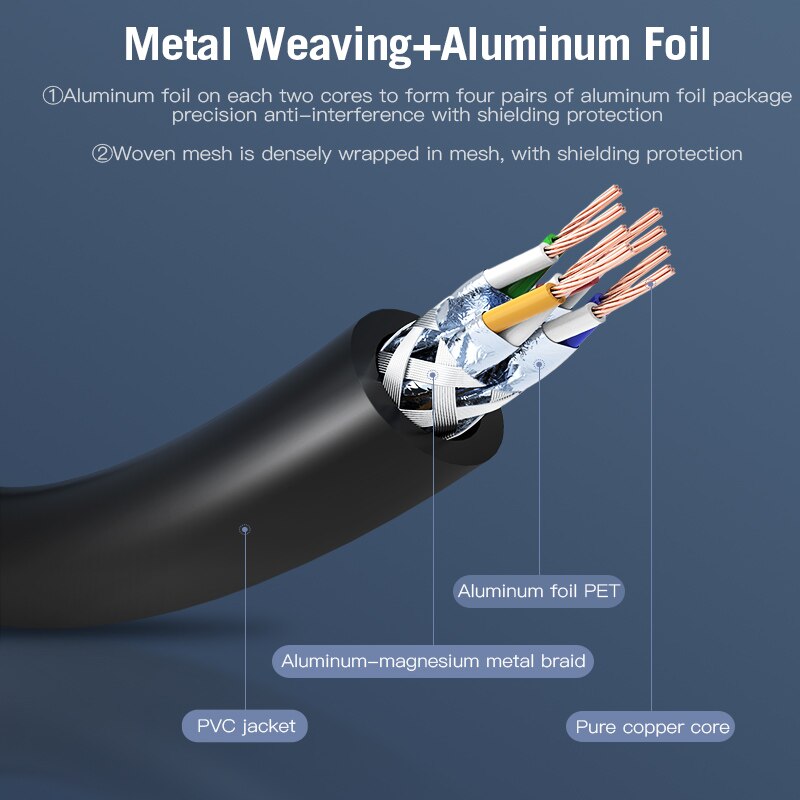 Dây Cáp Mạng Tốc Độ Cao STP Cat8 VENTION IKL (Đầu Xoay 360°, 40Gbps/2000MHz)