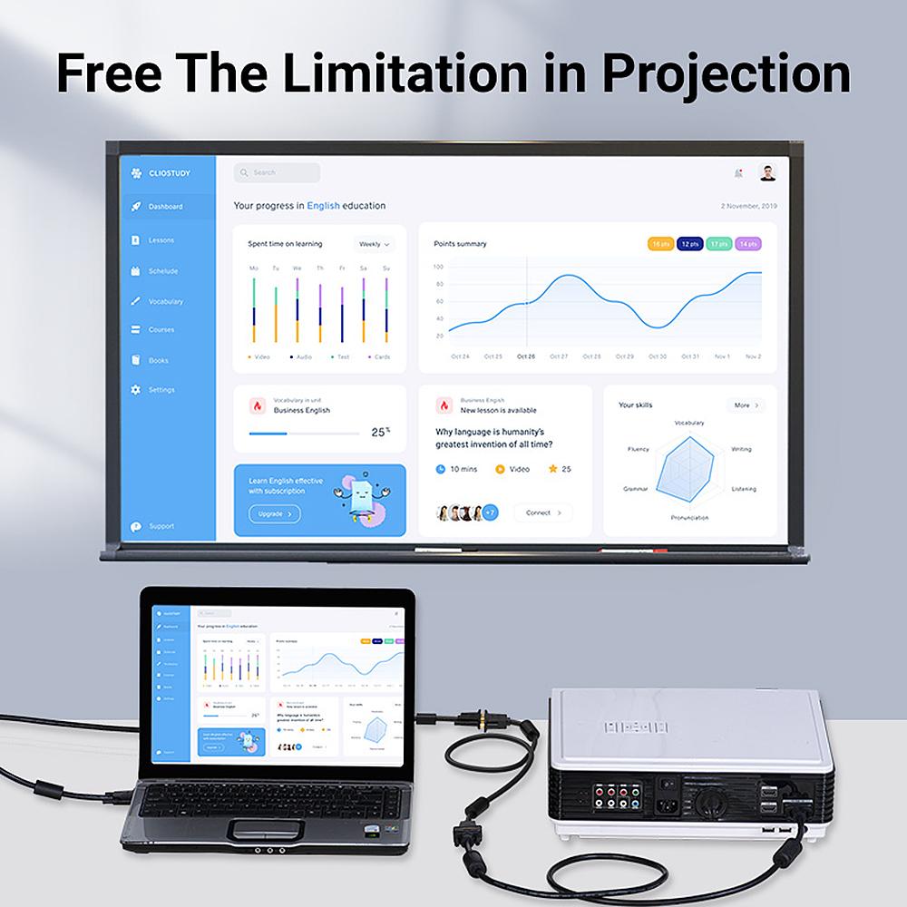 VENTION VGA extension cable with 15PIN allows you to connect projectors, displayer, TV, monitor with VGA interface to your laptop or PC for high quality videos or photos. It supports 1080P HD resolution. Features: Pursuit