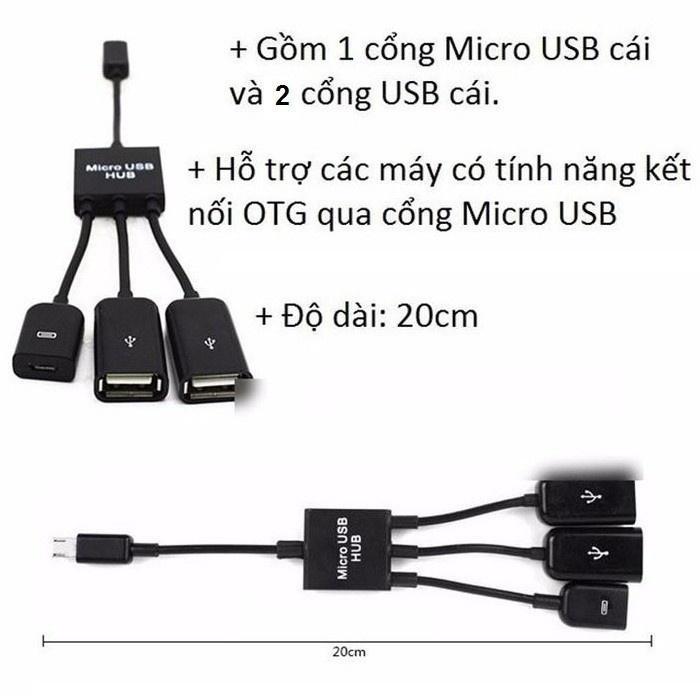 ***Lưu ý quan trọng : Micro USB HUB OTG 3 trong 1 có cổng sạc Micro USB chỉ cấp nguồn cho 2 cổng OTG nhé.
