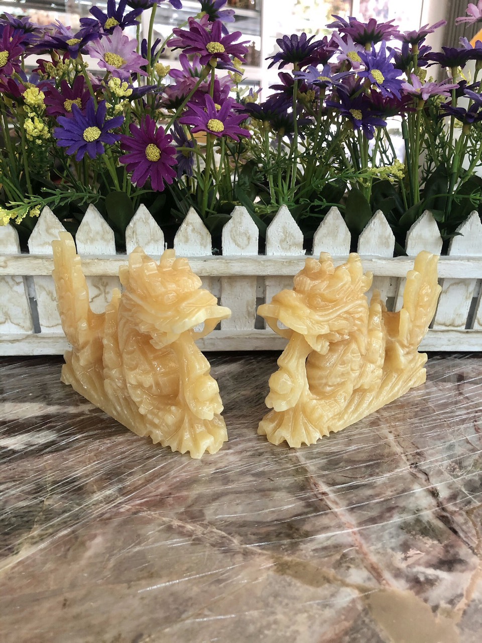 ✨Cặp Rồng nằm phong thủy đá ngọc hoàng long - Dài 12 cm