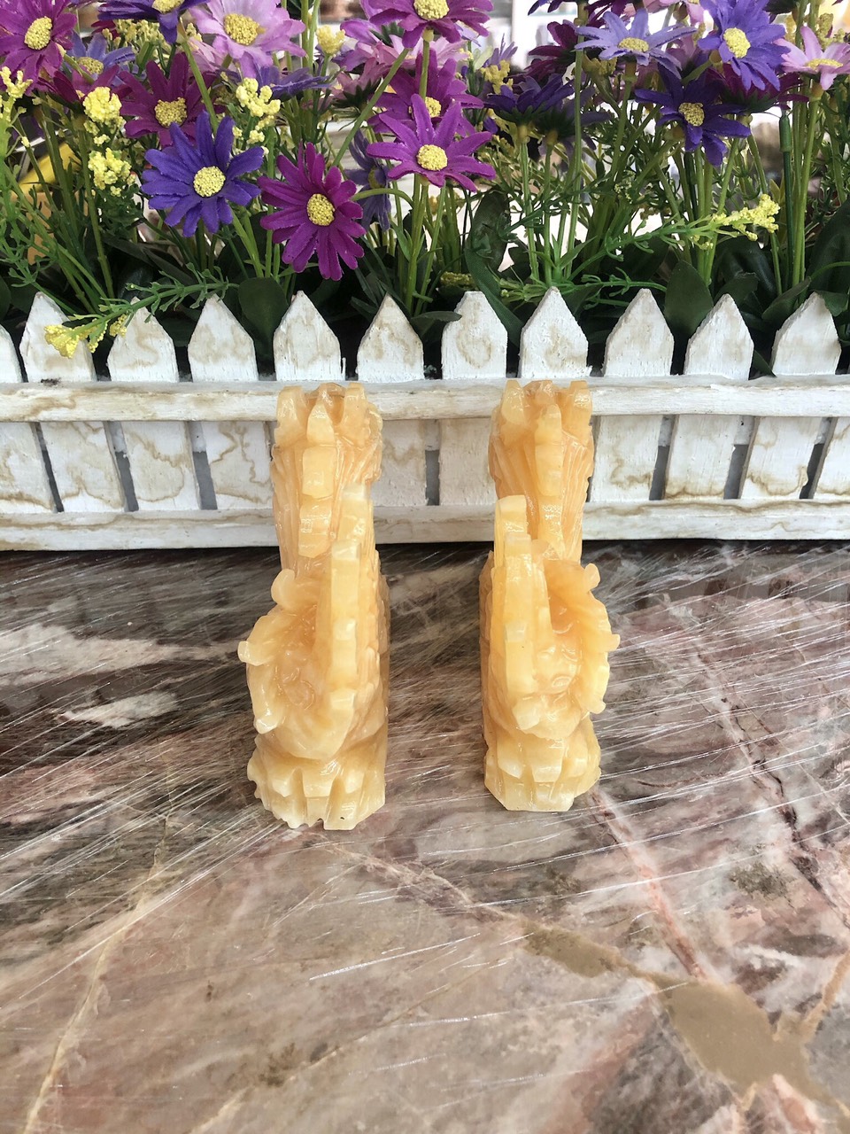 Hợp mệnh Thổ - Kim Chất liệu: Đá cẩm thạch vàng cà rốt Kích thước: Dài 15 cm X Rộng 6 cm x Cao 12,5 cm Khối lượng: 3,2 kg / cặp Ý nghĩa Tỳ