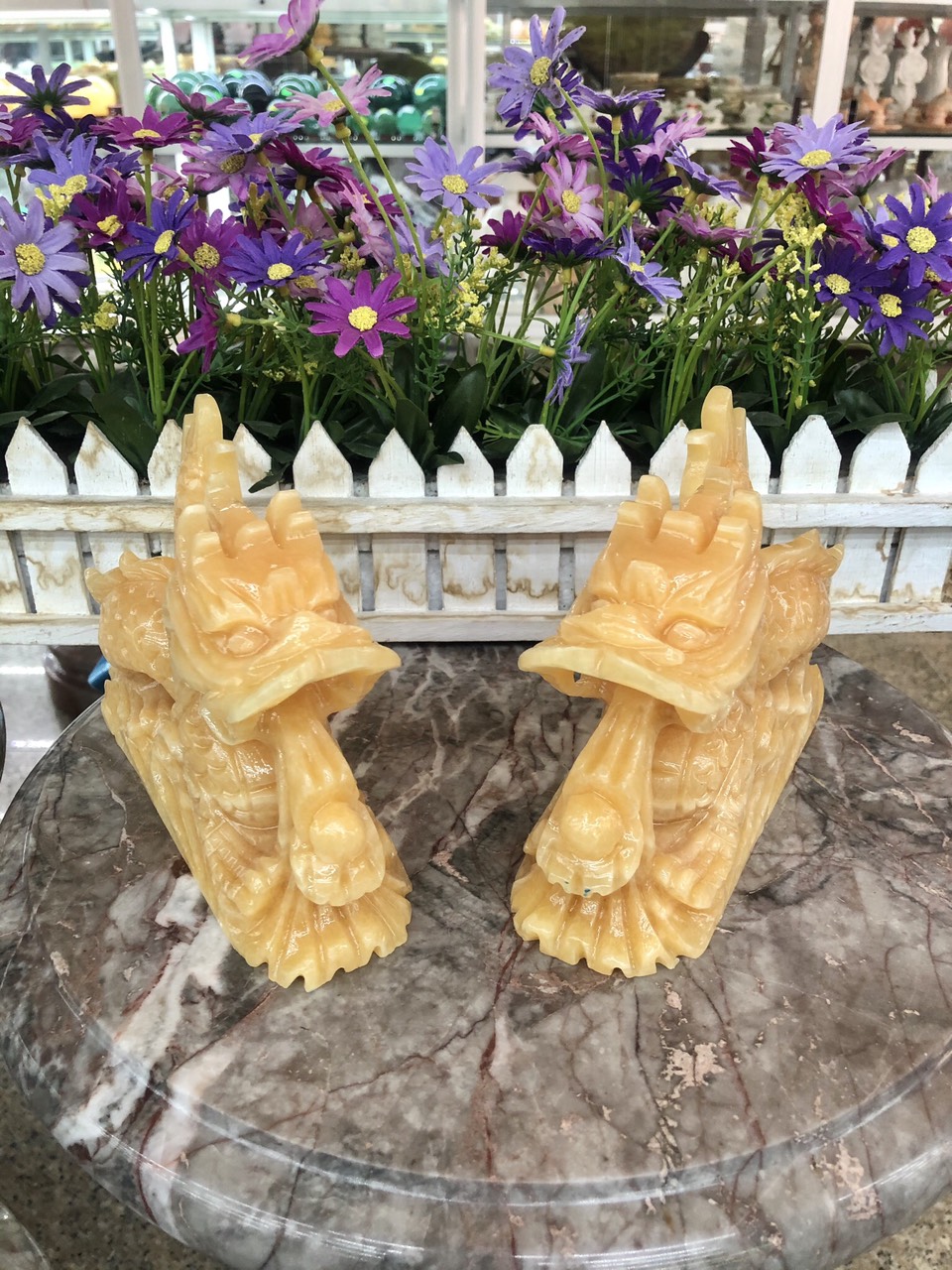 ✨Cặp Rồng nằm phong thủy đá ngọc hoàng long - Dài 18 cm