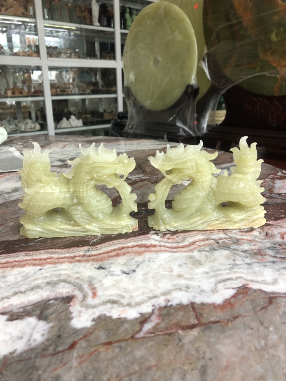 Mua tại TiktokChất liệu: Đá ngọc Onyx Kích thước: Dài 12 cm x Rộng 3,5 cm x Cao 9 cm và Dài 15 cm x Rộng 3,5 cm x Cao 10 cm Khối lượng: 750g và 1,2 kg Ý nghĩa của Rồng đá phong thủy