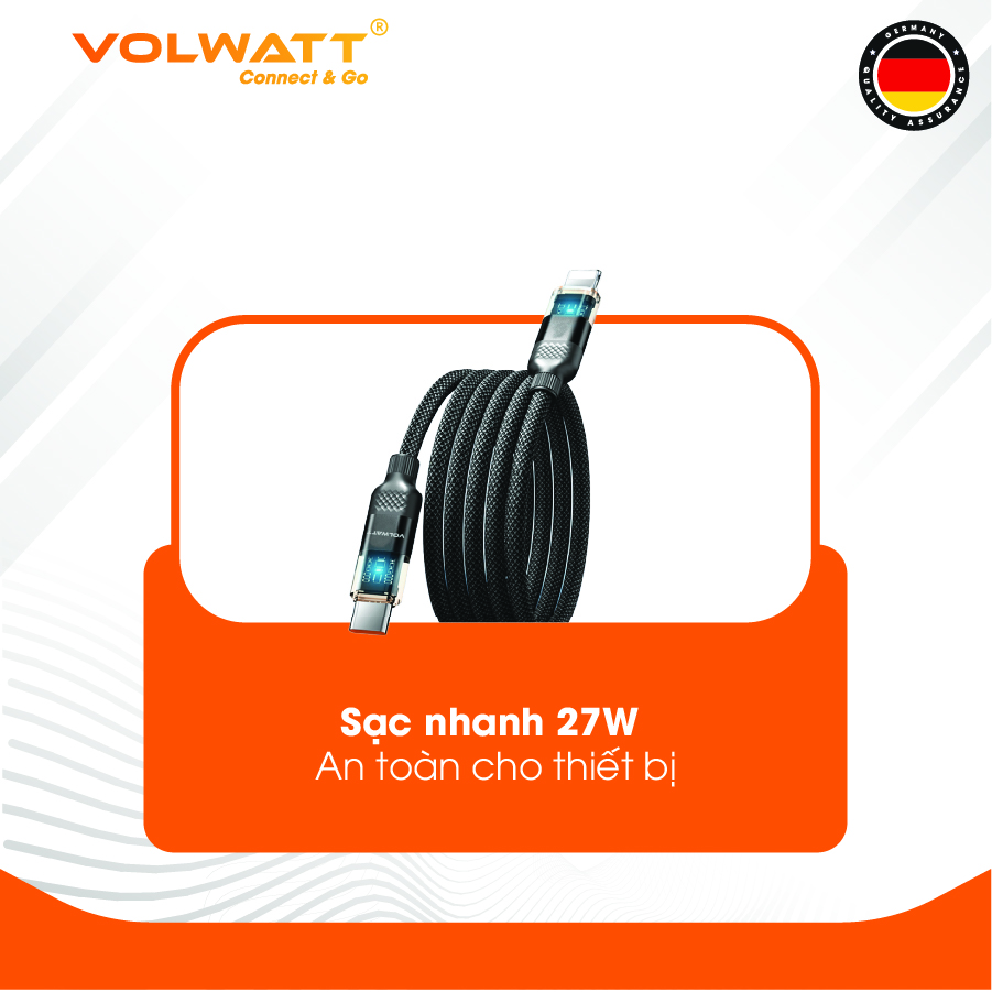 ✨Cáp sạc nam châm chống rối Volwatt GE-A45-CL hàng chính hãng | Cáp Type-C to L PD 27W, LED hiển thị, dài 1.2m – BH 12 tháng