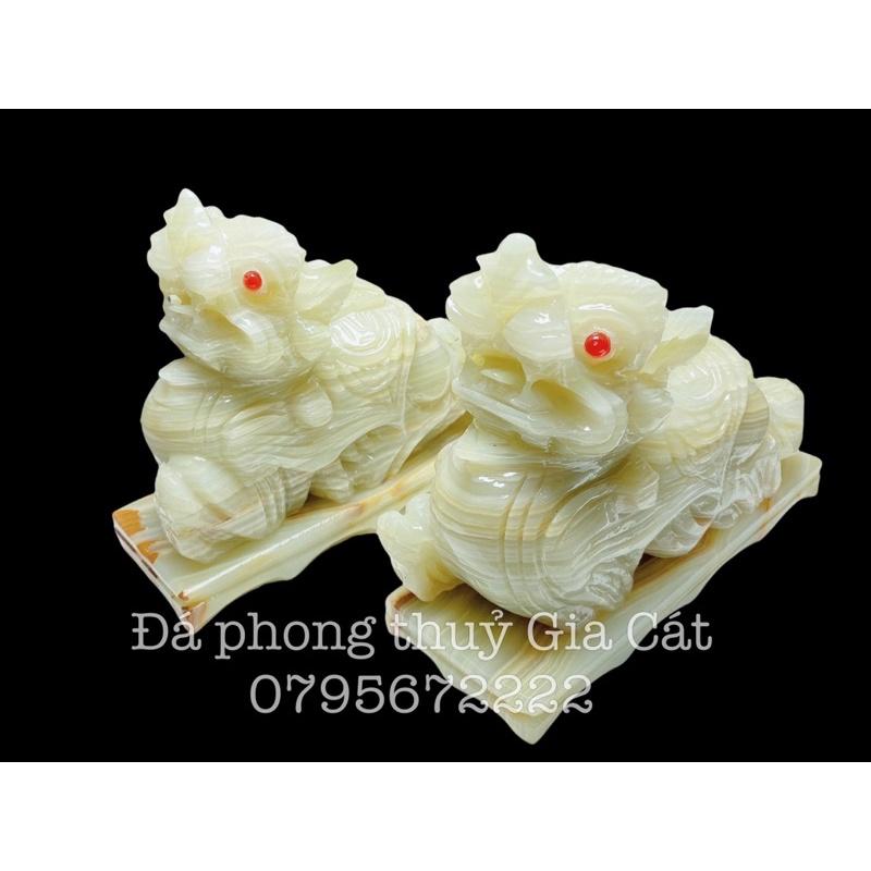 Cặp Tỳ Hưu Phong Thủy Đá Ngọc Onyx Pakistan Tự Nhiên Màu Trắng Ngọc 20cm
