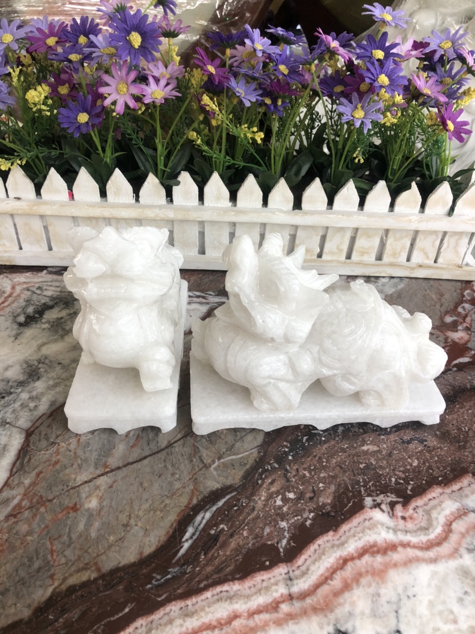 ✨Cặp Tỳ Hưu phong thủy tài lộc đá cẩm thạch trắng có đế đá - Dài 15 cm