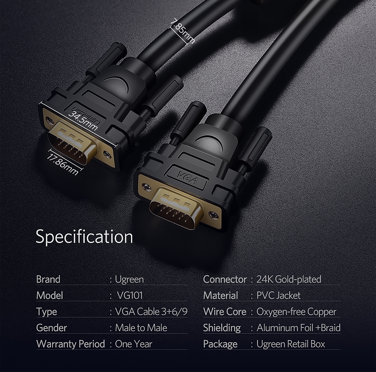 Mô tả Sản Phẩm Cáp Vga Dài 1M Ugreen 11673