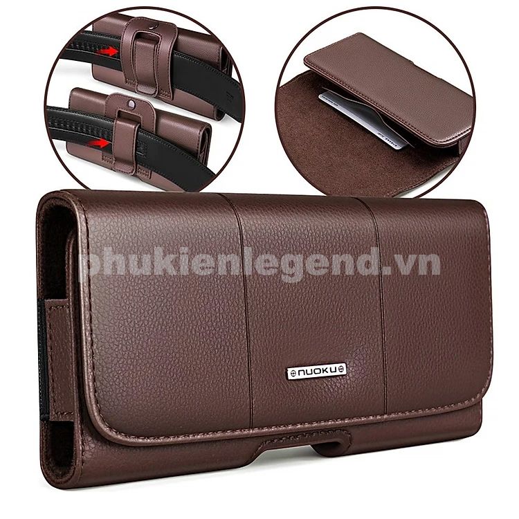 Case bao da đeo nịt da thật cho iPhone 11 12 13 14 Pro Max /15 Pro Max 14 Plus / Note 20 / S22 / S23 ultra/ S24 Ultra và các dòng máy từ 6.7 inch trở xuống hiệu Nuoku Elegant and Royal phiên bản đeo thắt lưng - chất liệu da thật cao cấp, có ngăn đựng thẻ, nắp gập hít nam châm