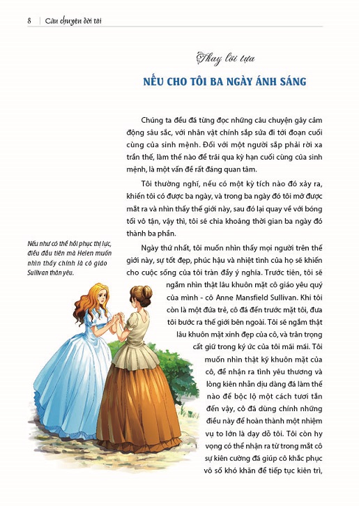 Cuốn sách này, thông qua câu chuyện chân thực và tràn đầy xúc động về cuộc đời của Helen Keller, đã làm thổn thức không biết bao nhiêu trái tim độc giả trên thế giới, và cũng mang lại sự cổ vũ, khích lệ to lớn cho những người tật nguyền và cả những người khoẻ mạnh trên trái đất này.