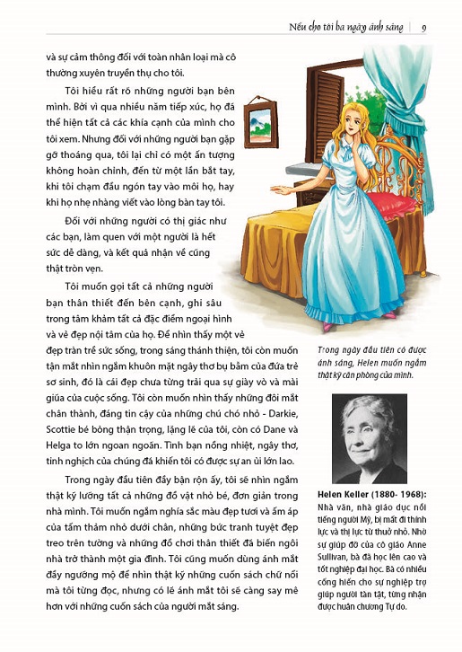 Helen Keller (1880 – 1968), từ nhỏ đã bị mù và điếc sau cơn bạo bệnh, nhưng dưới sự dìu dắt tận tình của cô gia sư Anne Sullivan, bà đã học đọc, học viết và học nói thành công, đến năm 20 tuổi, bà đã trở thành người khiếm thị kiêm khiếm thính đầu tiên trên thế giới nhận được tấm bằng đại học chuyên ngành văn học. Cả cuộc đời bà hết lòng vì sự nghiệp trợ giúp người tàn tật, được tạp chí Time của Mỹ đưa vào danh sách một trong mười vị anh hùng của nước Mỹ thế kỷ 20.