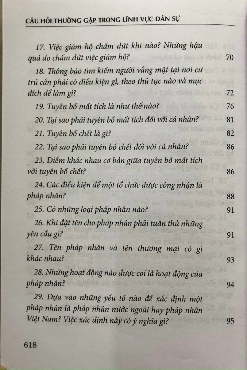Với mục đích góp phần nâng cao hiệu quả thực thi pháp luật và đáp ứng nhu cầu nghiên cứu, tìm hiểu của bạn đọc. Nhà xuất bản Tư pháp phát hành cuốn sách: "Câu hỏi thường gặp trong lĩnh vực dân sự"