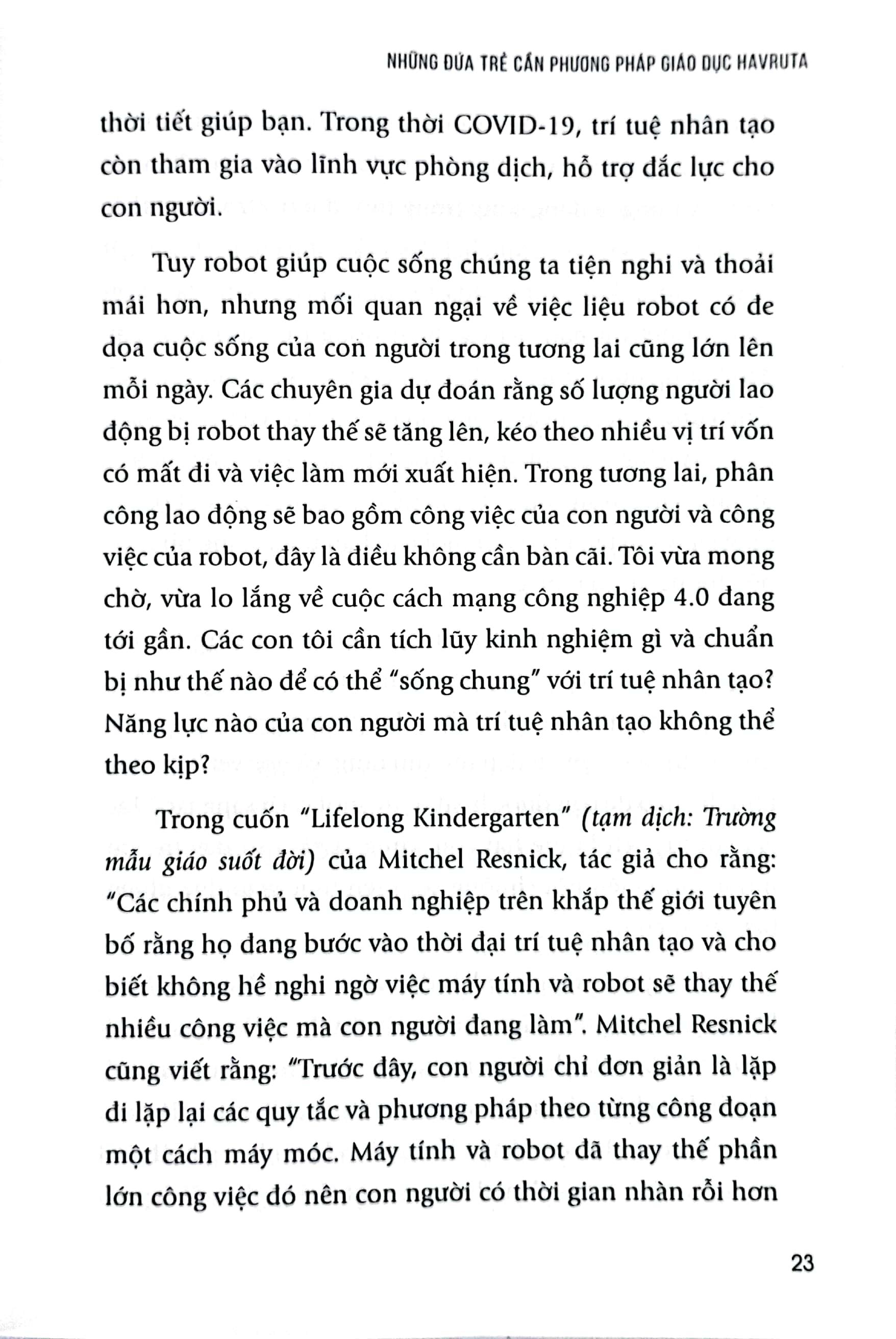Kết quả là cách suy nghĩ và cuộc sống giữa các thế hệ đã thay đổi rất nhiều. Tuy nhiên, giáo dục trẻ em còn có khoảng cách với sự thay đổi này. Chúng ta thường đối xử với con cái giống như cách mà thế hệ chúng ta được giáo dục tại nhà. Và tác giả Min Hye Young sẽ giúp các bậc cha mẹ thay đổi điều đó bằng phương pháp giáo dục Havruta trong cuốn sách Câu hỏi vĩ đại thay đổi con tôi – Havruta.