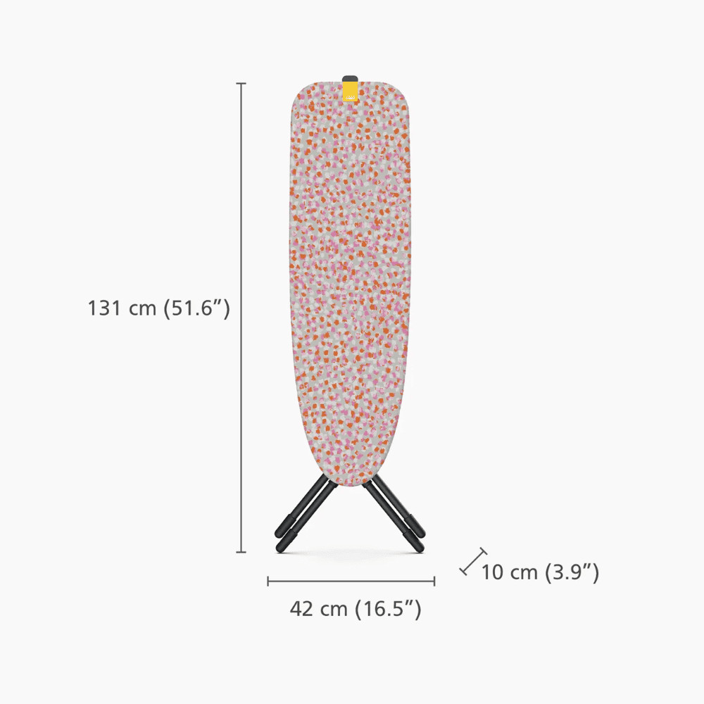 Khi gấp lại, cơ chế gấp sáng tạo đảm bảo rằng cả hai chân ở cuối bảng nằm trong nhau. Điều này làm giảm khả năng bị kẹt ở bất cứ đâu khi lấy ra khỏi tủ. Tay cầm lớn ở mặt sau cũng giúp bạn dễ dàng mang theo hơn và kết hợp với giá đỡ tích hợp đóng vai trò như một móc treo an toàn.