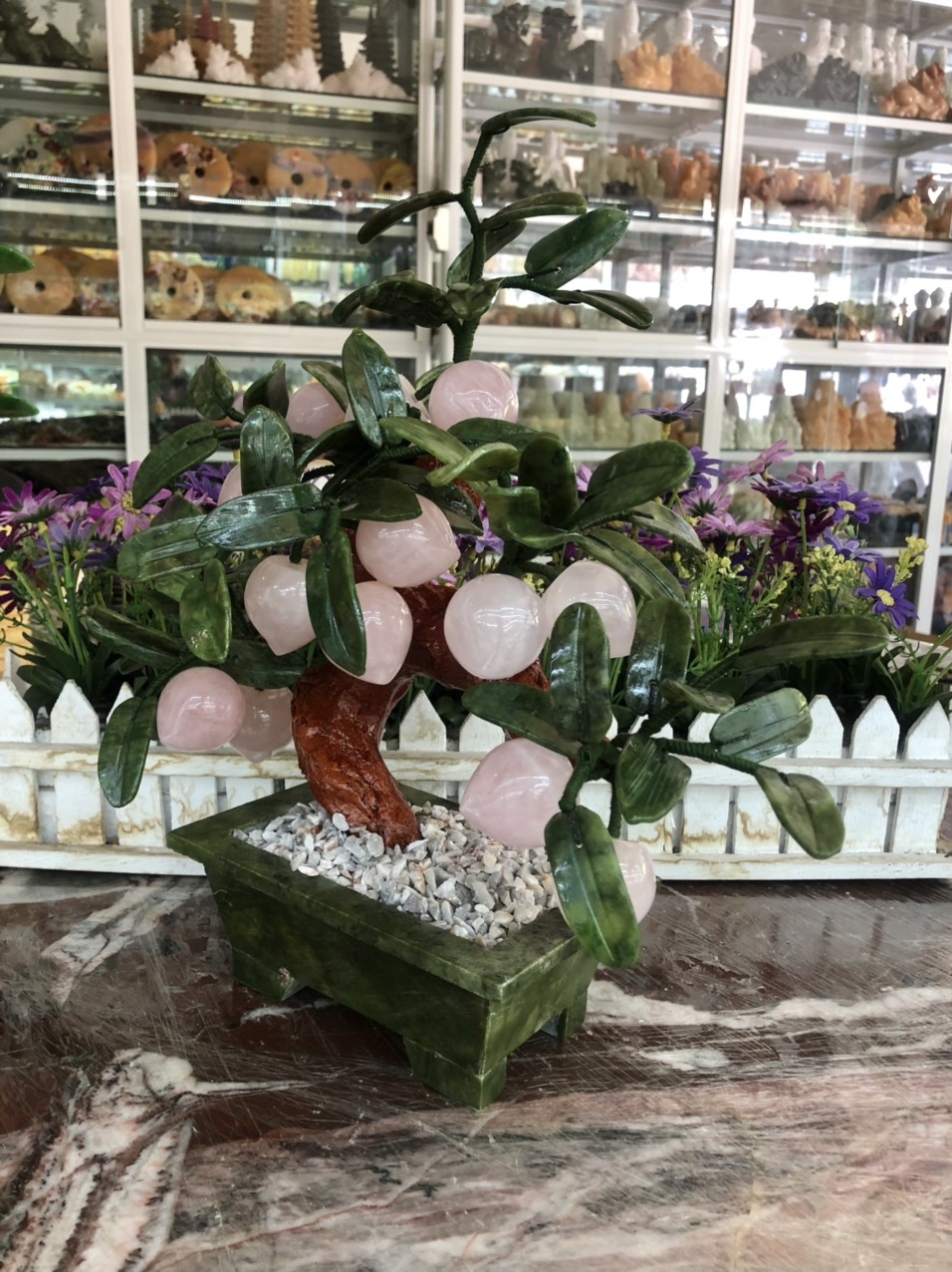 Tượng Phong Thủy Cây Đào Thạch Anh Hồng tự nhiên 18 quả to đẹp Kích thước cao 55cm x ngang 42cm x sâu 20cm Anh Chị trưng phòng khách nhà, công ty biểu tượng sự