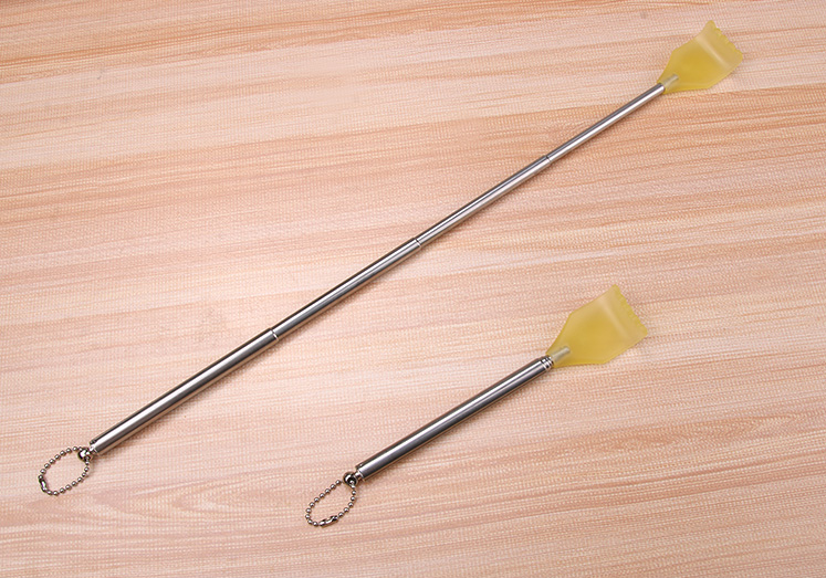 - Thân inox, đầu gãi bằng nhựa cứng. Phía dưới cùng có xâu có thể treo hoặc móc tiện dụng