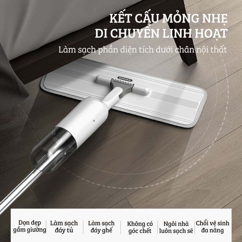 ✨Cây Lau Nhà Phun Sương, Chổi Lau Nhà 360° Lau Sạch Khô Nhanh Cao Cấp Damas P1 Pro - Bản Lau To Giúp Lau Sạch Nhanh Chóng, Khớp Xoay 180 Độ Linh Hoạt - Thiết Kế Mới Tích Hợp Bình Chứa Dung Dịch Với Tốc Độ Phun Sương 0.1s - Hàng Chính Hãng