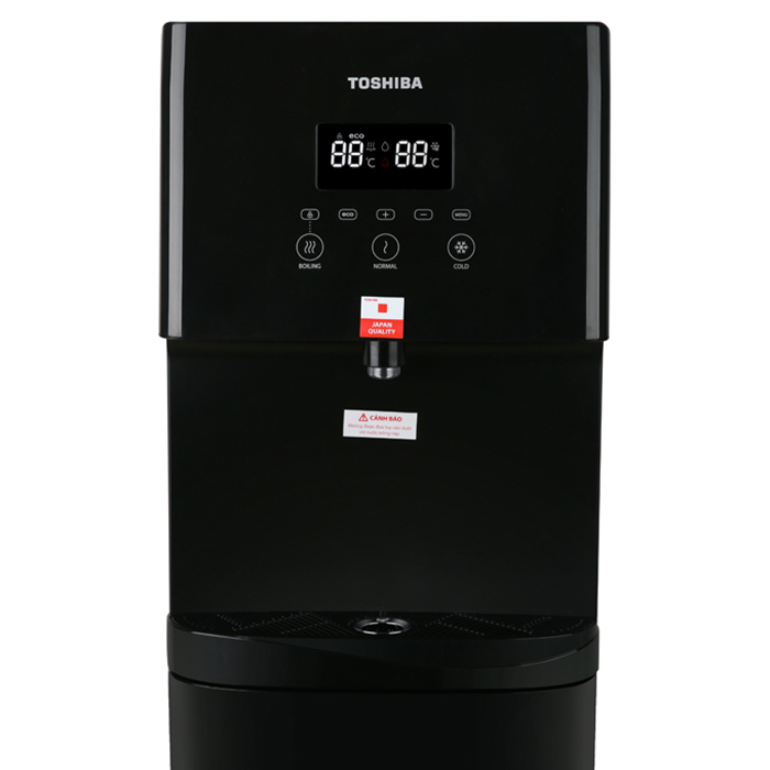 - ĐƯỢC KHUI THÙNG KIỂM TRA sản phẩm trước khi thanh toán/ký nhận Thiết kế hiện đại, sang trọng Cây Nước Nóng Lạnh Toshiba RWF-W1830BV(K) sở hữu thiết kế sang trọng phù hợp với mọi không gian hiện đại, cung cấp nguồn nước nóng - lạnh đạt chuẩn chất lượng, an toàn cho sức khỏe người tiêu dùng. Trang bị bình nước gắn dưới tiện dụng tháo lắp bình nước chuyên dụng dễ dàng hơn. Hệ thống làm lạnh thông minh Sản phẩm có hệ thống làm lạnh bằng máy nén cho độ làm lạnh sâu hơn, tiết kiệm điện hơn. Với nhiệt độ làm lạnh từ ≤ 10 độ C, công suất 100W, số lít làm lạnh 2.5 lít/giờ, đảm bảo luôn có nước mát lạnh cho bạn giải khát mọi lúc. Và nhiệt độ làm nóng 85 đến 95 độ C, công suất 550W, số lít làm nóng 4 lít/giờ, cung cấp đủ nước nóng cho bạn pha trà, chế mì, pha sữa… tiện lợi. Chất liệu cao cấp Sản phẩm có bình chứa bằng inox 304 thiết kế liền khối có độ bền cao, an toàn cho sức khỏe, thân thiện và không gây mùi khó chịu. Vỏ máy làm bằng nhựa ABS không phai màu, siêu bền, có khả năng chịu va đập, đặc biệt có thể chịu được nhiệt độ cao mà không gây ra phản ứng hóa học ảnh hưởng đến chất lượng nguồn nước. Bảng điều khiển điện tử Bảng điều khiển nút nhấn điện tử với 3 chế độ cấp nước: nước thông thường, nước nóng và lạnh với nhiệt độ nước nóng đạt 85 – 95 độ C và nhiệt độ nước lạnh 5 – 10 độ C. Màn hình led báo nhiệt độ nước trong bình, tiện lợi khi cần sử dụng. Công tắc nước nóng và nước lạnh độc lập để người dùng chủ động hơn trong nhu cầu sử dụng thiết bị, thêm an toàn, thêm tiết kiệm điện. Vòi nước nóng thiết kế khóa an toàn Đặc biệt, khi khóa được kích hoạt, trẻ nhỏ có táy máy bấm vào vòi, nước nóng cũng không chảy ra ngoài gây nguy hiểm cho chúng, giúp đảm bảo an toàn cho gia đình bạn hiệu quả. Cùng với khoảng cách giữa vòi và khay đựng nước đã được thiết kế hợp lý có tính toán khiến bạn dễ dàng lấy nước khi sử dụng cốc cao hay bình đựng cá nhân.