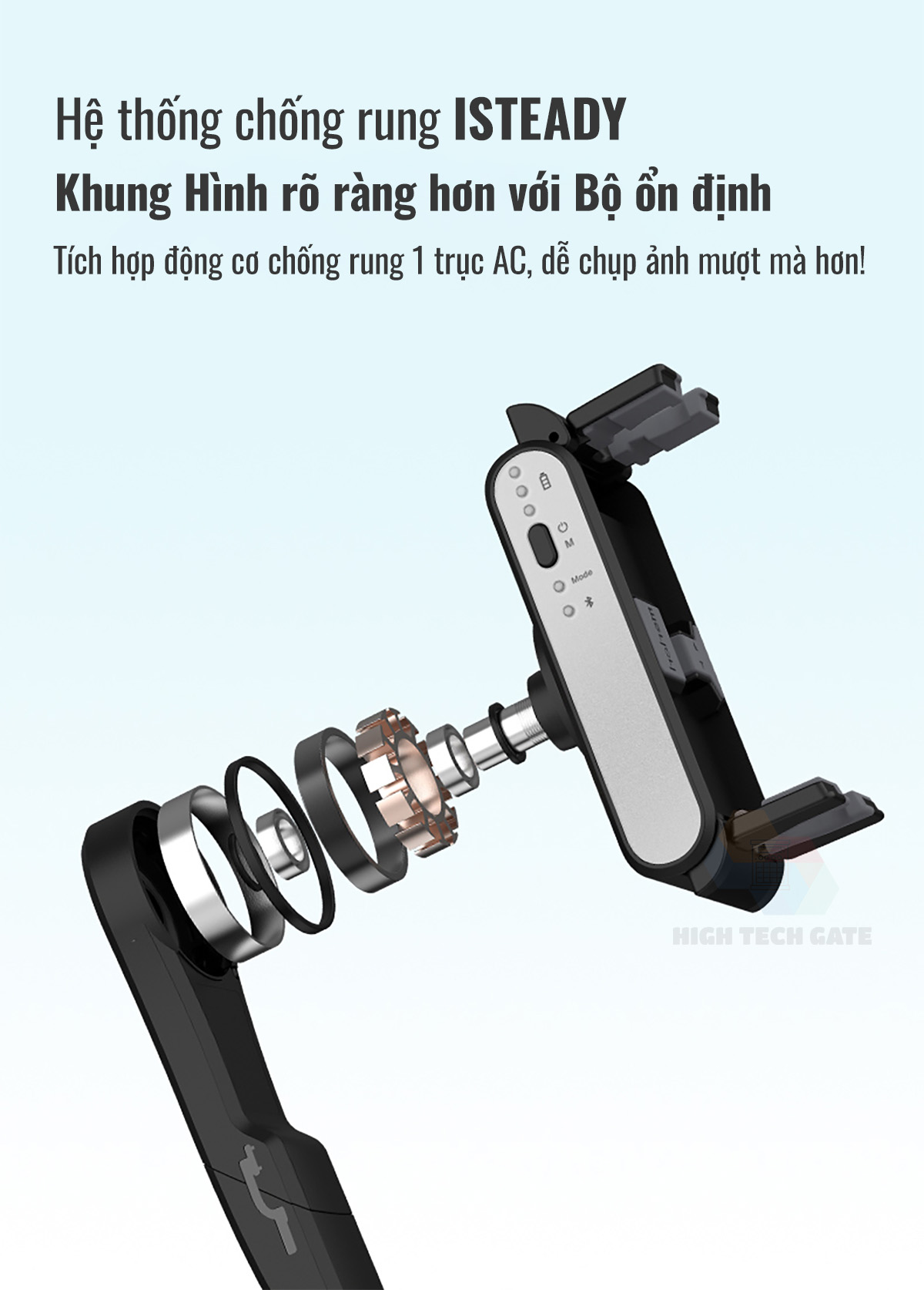 - Hohem iSteady M7 sử dụng thuật toán chống rung isteady 9.0 mới nhất mang lại khả năng cân bằng đáng kinh ngạc, cùng với 3 trục động cơ mạnh mẽ tải trọng lên đến 500g,