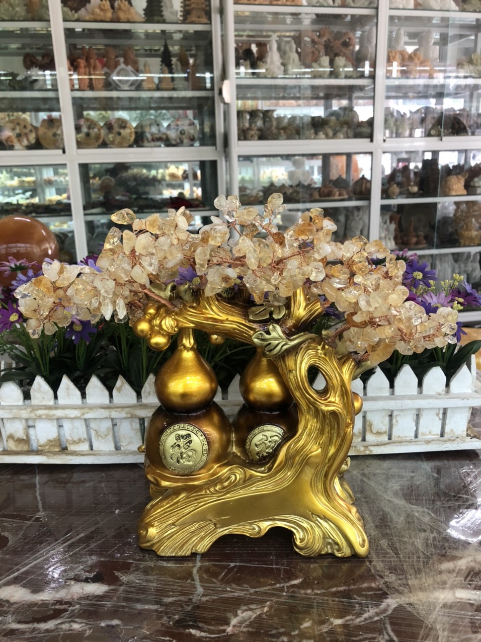 Hợp mệnh Thổ - Kim Chất liệu: Đá thạch anh vàng Kích thước: Dài 28 cm x Rộng 18 cm x Cao 40 cm Khối lượng: 3,8 kg Cây tài lộc là biểu tượng của