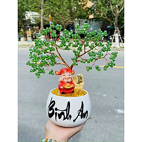 Hợp mệnh Hỏa, Kim và Mộc Chất liệu: Đá thạch anh dâu tây xanh Kích thước: Dài 28 cm x Rộng 18 cm x Cao 40 cm Khối lượng: 3,8 kg Cây tài lộc là