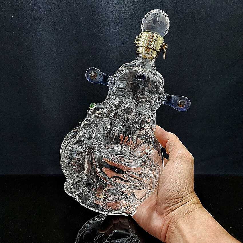 Chai Đựng Rượu Thủy Tinh 1000ML cao cấp mẫu Thần Tài Chai thủy tinh đựng rượu 1 Lít – Vỏ Chai Rượu Đẹp decor (E8) Glass bottle 1000ml – God of Wealth design - 1