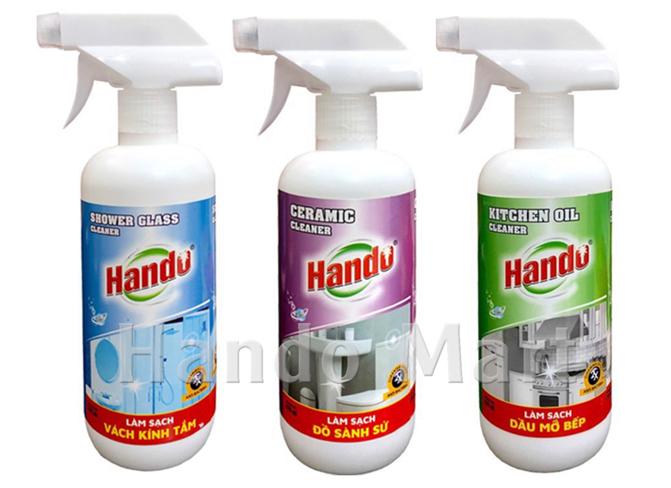 Thông tin sản phẩm: Chai xịt làm sạch vách kính nhà tắm Hando 570ml - Xuất xứ thương hiệu: Hando-Việt Nam - Dung tích: 570ml - Thiết kế: dạng chai xịt - Hạn sử dụng: