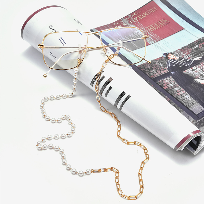 Chuỗi xích đeo mắt kính chống rơi rớt hạt châu bất đối xứng thời trang nam và nữ cá tính Chuỗi xích đeo mắt kính chống rơi rớt hạt châu bất đối xứng thời trang