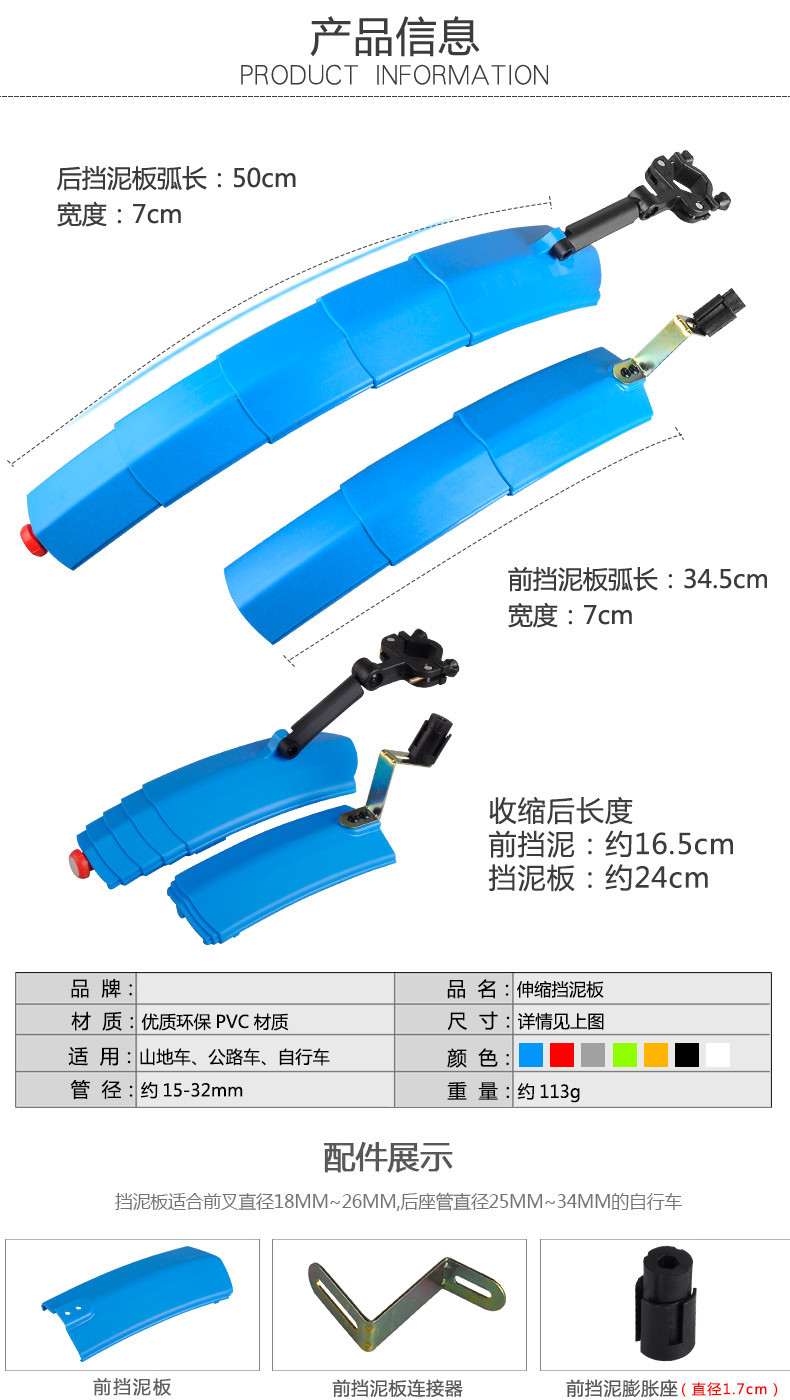 Mua tại TiktokChắn Bùn Rút Linh Hoạt Cho Xe Đạp Có Đèn Hậu Mô Tả :