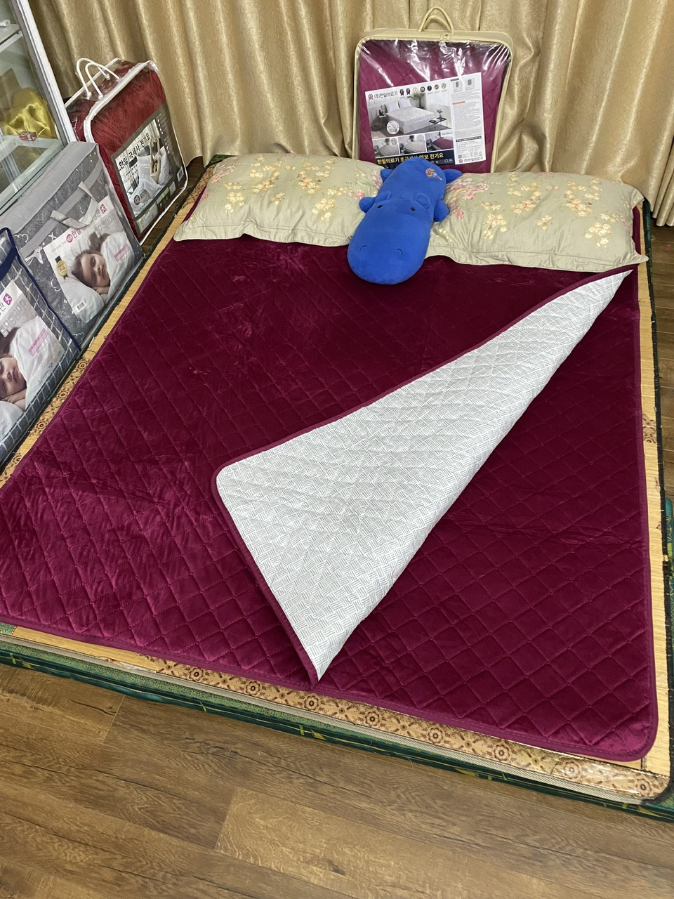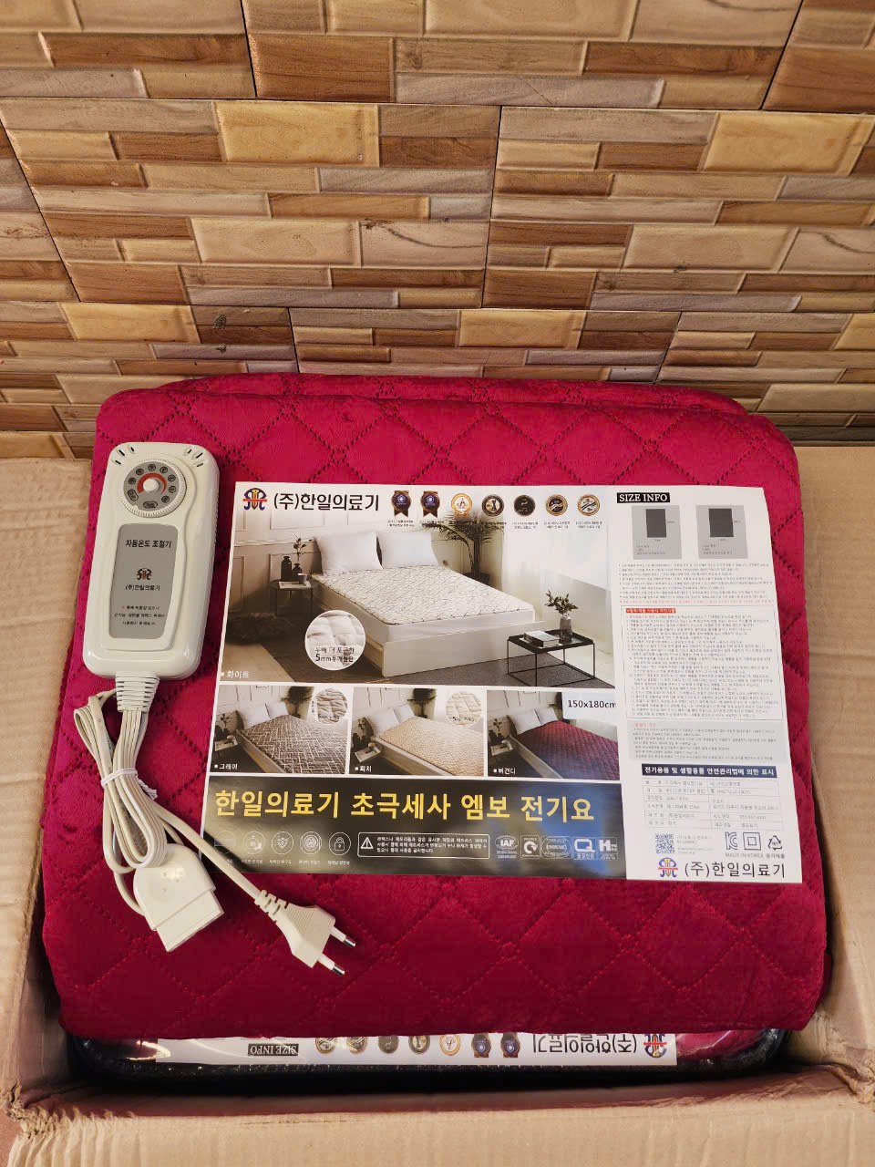 - Chất liệu nhung nỉ , màu đỏ đô. đệm sưởi Hàn Quốc giúp đảm bảo độ ấm tuyệt vời cho cơ thể vào những đêm đông giá rét; giúp loại bỏ ẩm thấp nơi giường nằm, đảm bảo cho giường nệm luôn khô ráo và ấm áp. Chăn điện rất tốt cho sức khỏe người dùng, tốt hơn khi dùng cho người già và những người bị chứng đau lưng mỏi cơ, thấp khớp Khuyến cáo khi sử dụng đệm điện Hàn Quốc: Khi khởi động cắm chặt đầu giắc vào chăn, chỉnh điều khiển về số 4 hoặc 5 tầm 7 đến 10 phút là nóng đều, thì điều chỉnh số về 1 SỐ 2 theo thời tiết. - Khi gấp chăn không nên để bộ điều khiển nhiệt ra ngoài mà nên để trong lòng chăn để đảm bảo tuổi thọ cho bộ điều khiển.