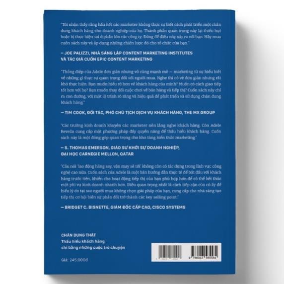 Công ty phát hành: RIOBook Tác giả: Adele Revella NXB: NXB Dân Trí Ngày phát hành: 2022 Số trang: 327 Giới thiệu sách: Cuốn sách “CHÂN DUNG THẬT - Thấu hiểu khách hàng chỉ bằng