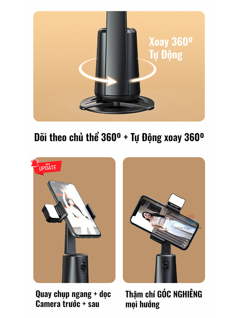Nâng cấp silicone chống xước, chống trơn trượt chắc chắn bảo vệ điện thoại Tính năng kế thừa của Chân Kẹp AI thông thường Chế độ tự động Xoay 360º - Nhấn đúp nút nguồn liên tiếp Nhận diện khuôn mặt, theo dõi khi di chuyển