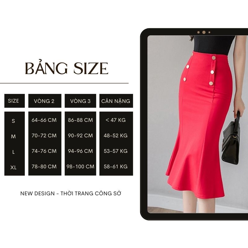 - Chân váy công sở dáng đuôi cá không nhũng nữ tính, tôn dáng mà còn thướt tha mềm mại theo mỗi bước chân của nàng BẢNG SIZE