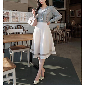 Chân váy xòe qua gối thích hợp mặc công sở, dạo phố - Với thiết kế chân váy xòe tròn tinh tế, thích hợp mặc đi làm, dự tiệc hoặc cafe cùng bạn bè. Kết hợp phối lưới, tạo điểm nhấn cho người mặc, mang đến nét đẹp trẻ trung và quyến rũ