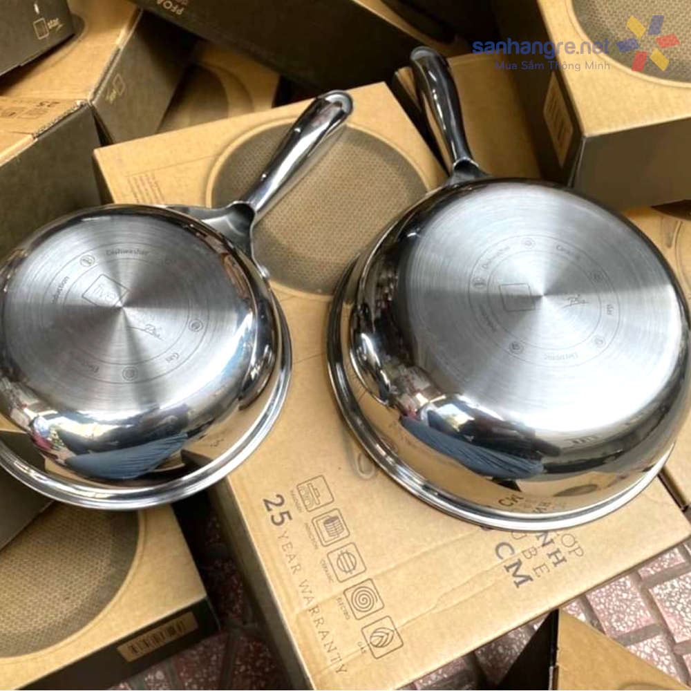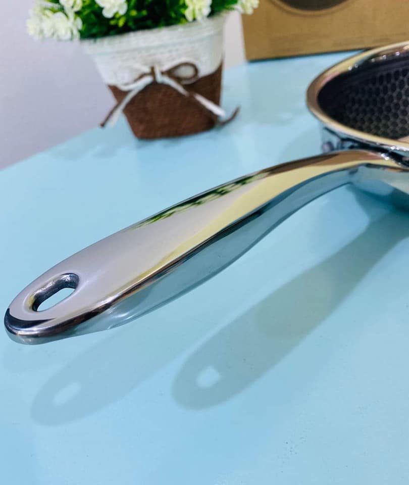 - Chảo inox sáng bóng phủ lớp chống dính siêu bền an toàn cho sức khỏe.