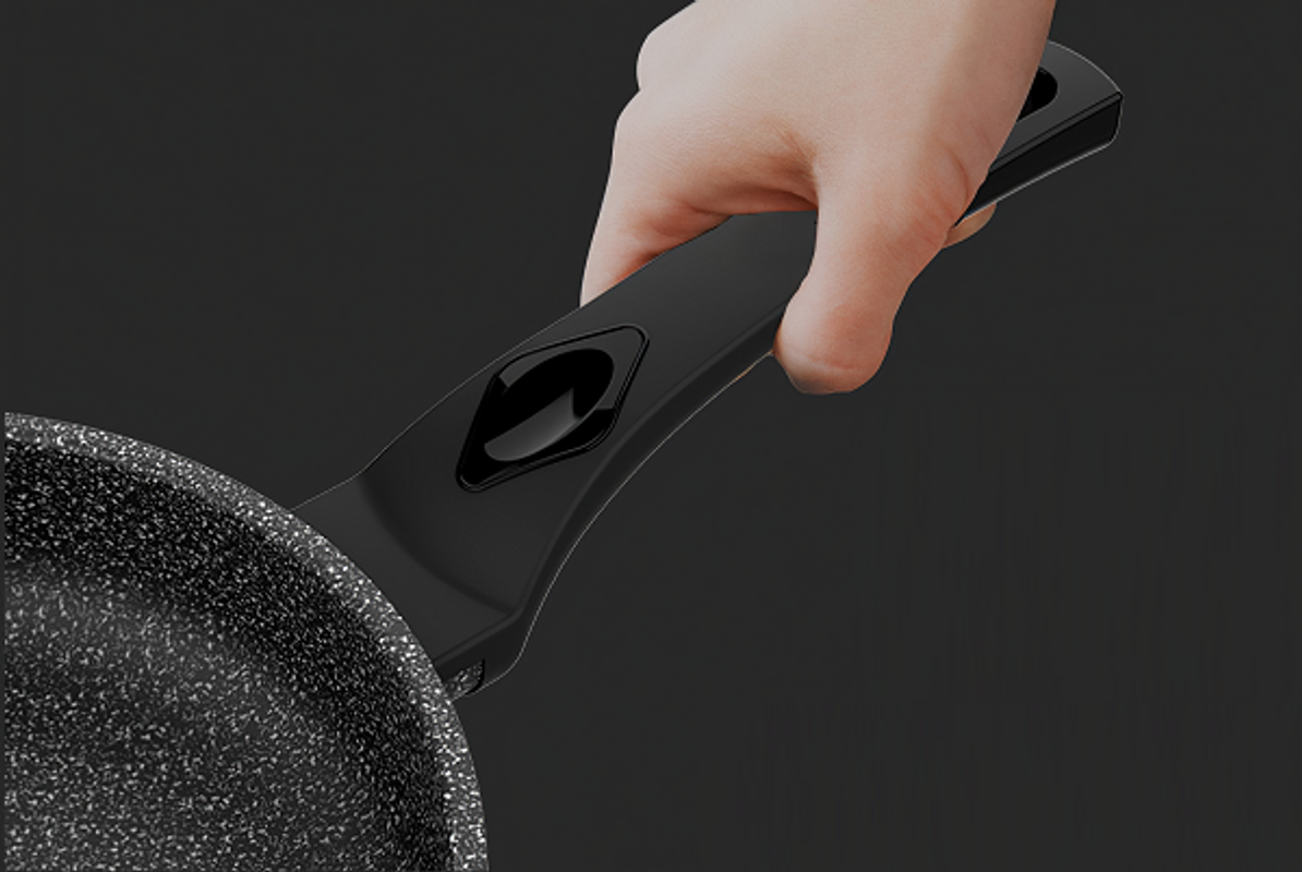 - Đáy chảo được thiết kế đế liền là đáy từ, với các đường đồng tâm bắt từ, bề mặt đáy từ rộng giúp chảo sẽ có lượng nhiệt đều hơn khi sử dụng bếp từ hay bếp Đáy là loại đáy sần, chống trượt khi sử dụng trên các bề mặt phẳng.- Lớp vân đá hoa cương giúp tăng khả năng chống dính, hạn chế bong tróc cũng như ngăn bám bẩn, dễ dàng vệ sinh, giữ sản phẩm luôn như mới.