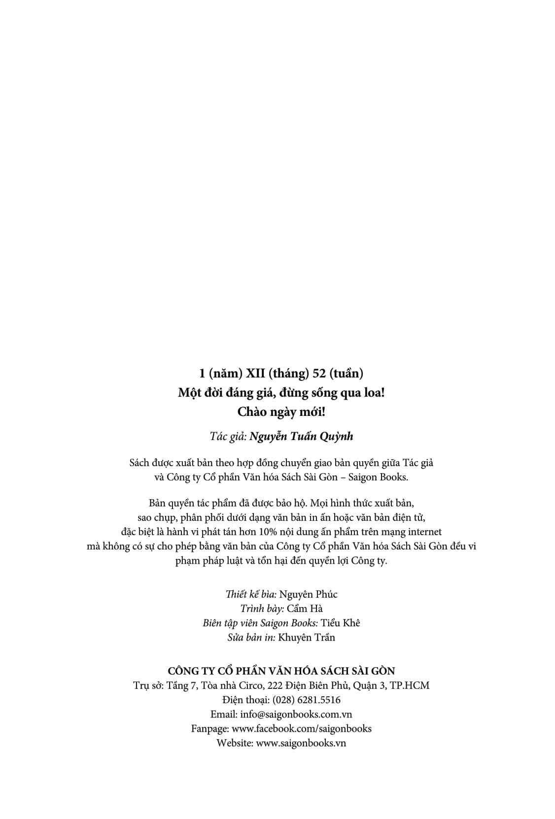 Là một người đam mê xê dịch, một doanh nhân truyền cảm hứng, tác giả Nguyễn Tuấn Quỳnh đi nhiều và có cơ hội gặp gỡ rất nhiều người. Sau những kinh nghiệm từng trải, những khó khăn từng đối mặt, những thất bại từng vượt qua, những quốc gia từng đặt chân đến... tác giả đã đúc kết phương châm sống của m.ình: