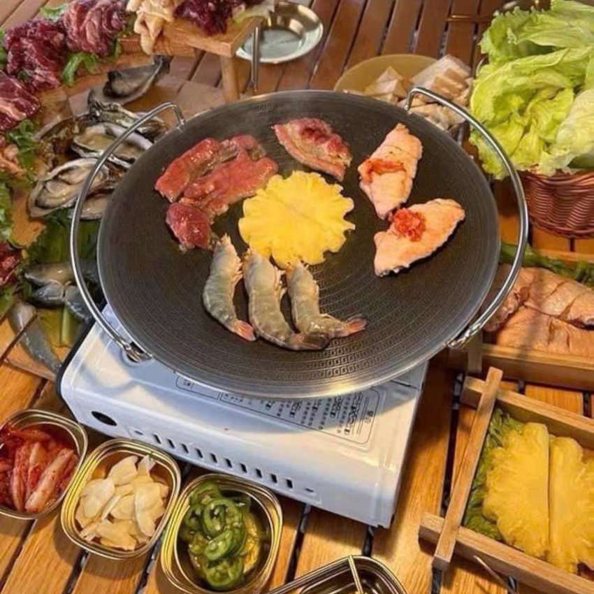 Size: 34 cm Chống dính tự nhiên Nướng tiệc gia đình, dã ngoạ Có thể tận dụng chiên xào như chảo Nướng các món bánh như bánh nướng, pizza, Lòng chảo rộng Sử dụng được