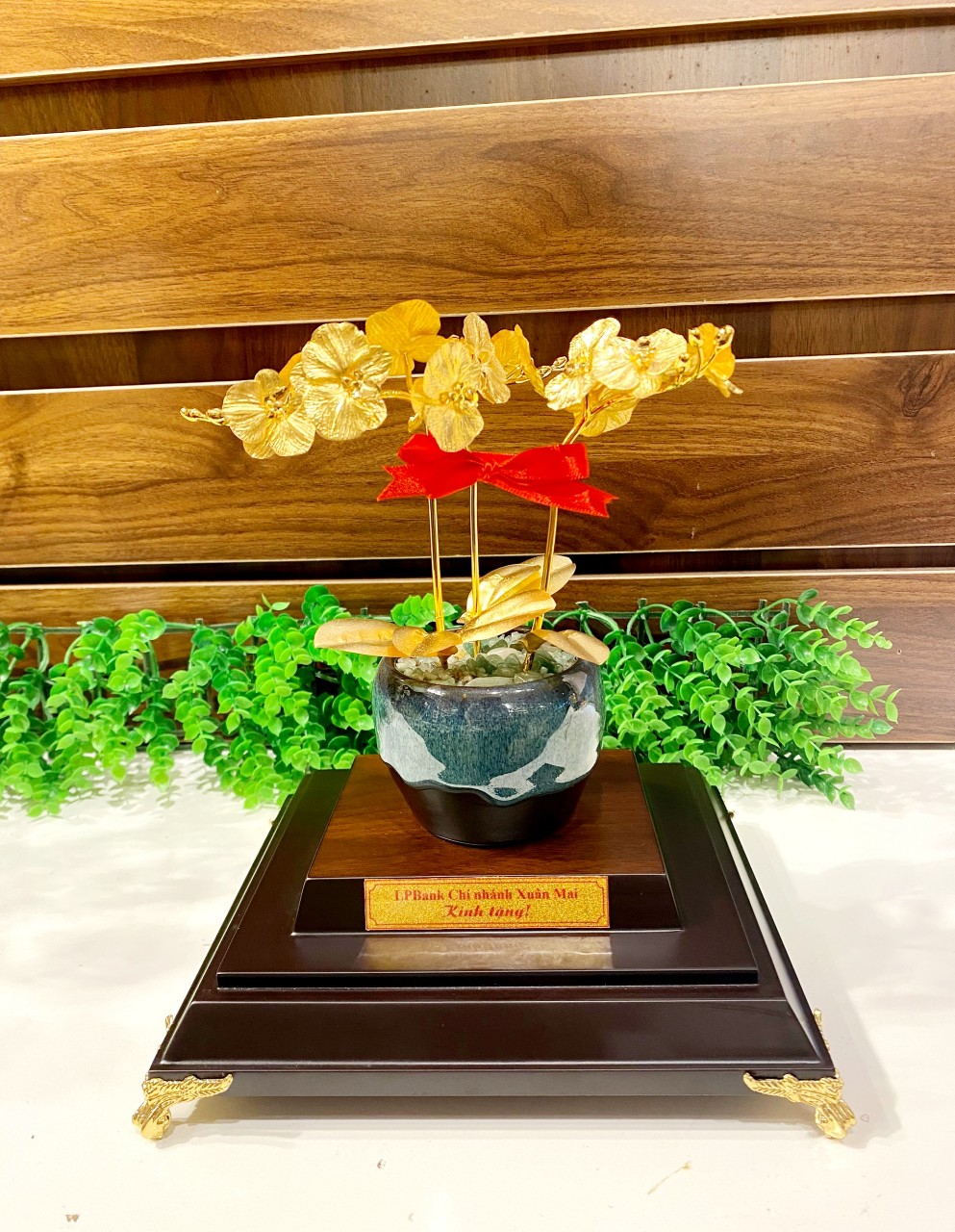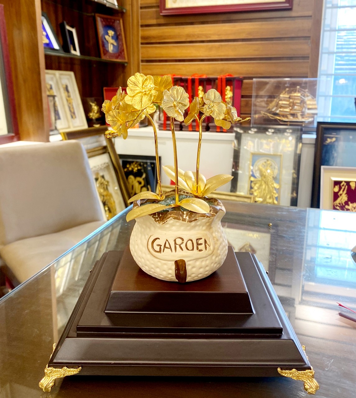 Hoa lan là loài hoa có vẻ đẹp dịu dàng, thanh tao và sang trọng. Chậu hoa lan dát vàng là sản phẩm độc đáo dành cho những người yêu thích các loài hoa. Hoa lan