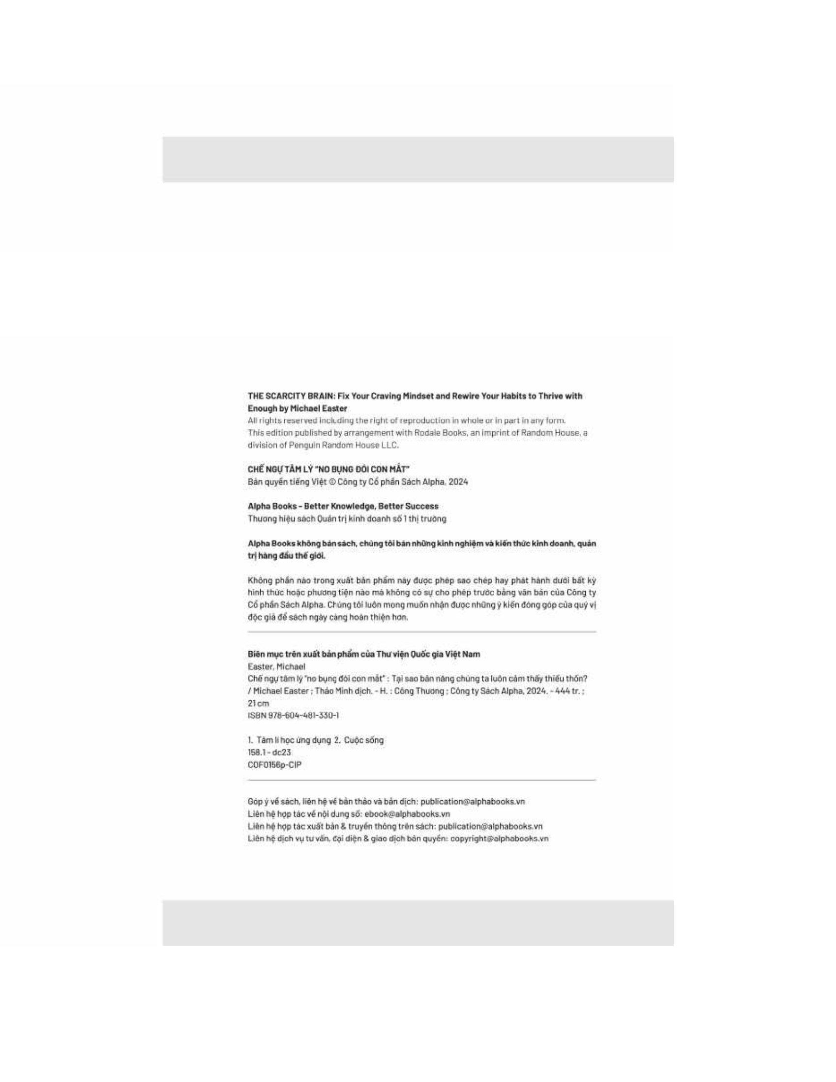 Chế ngự tâm lý “no bụng đói con mắt" của Michael Easter đưa người đọc vào một hành trình kích thích tư duy để tìm hiểu sự phức tạp của tâm trí con người và lý do đằng sau những ham muốn vô độ của chúng ta. Easter khám phá khái niệm về tư duy khan hiếm, "vòng lặp thiếu thốn" - một chu kỳ liên tục khiến chúng ta mong muốn sở hữu nhiều hơn trong các khía cạnh khác nhau của cuộc sống, từ thực phẩm và của cải vật chất đến thông tin cũng như sức ảnh hưởng.